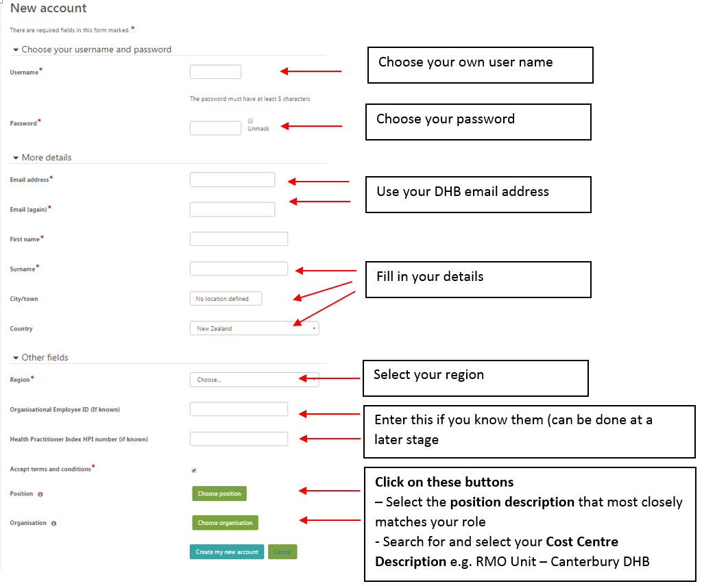 Create a healthLearn account - using a registered work email address